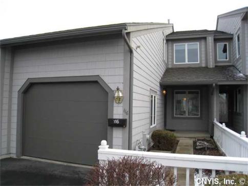 Beautiful 3 bedroom, 2.5 bath townhouse on cul de sac in desirable Erie Village. Living room with ceiling fan and gas fireplace has sliding glass door opening onto private deck overlooking picturesque pond. First level rooms freshly painted. Hardwood floors, 1/2 bath and laundry on first level. Eat in kitchen. All appliances stay. Large master bedroom with master bath and walk in closet. Two additional bedrooms and full bath on second level. Full basement has partially finished rec room area. Enjoy the beach at Erie Lake and walk the nature trail. Close to the Erie Canal for biking and hiking.