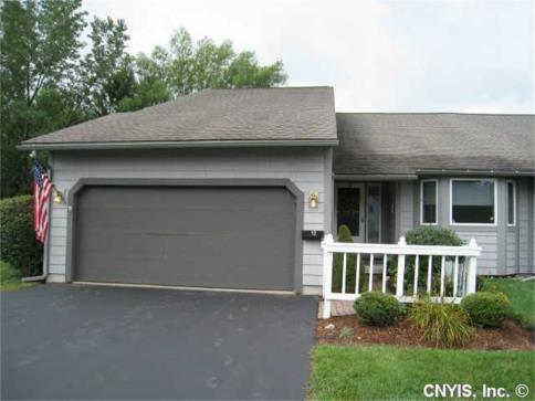 Single level, 2 BR, 2 BA end unit townhouse on quiet cul de sac backs up to woods in desirable Erie Village. Large, freshly painted kitchen has breakfast area with bay window. Living room with new window treatments has cathedral ceiling with skylights and ceiling fan. Sliding glass doors on either side of gas fireplace open onto private deck with storage shed. Master bedroom suite has sliding glass door to deck, cathedral ceiling with ceiling fan, master bath with whirlpool tub, vanity area, and walk in closet. Second bedroom has two clothes closets and walk in closet. Two car garage.