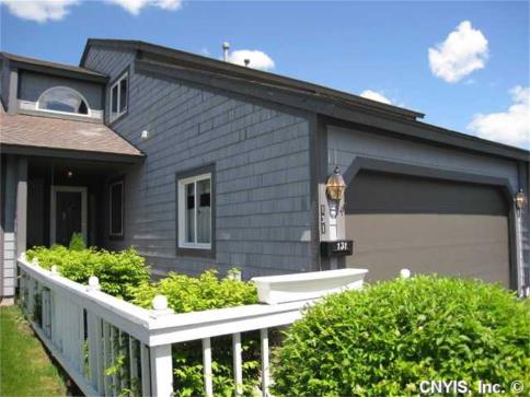 Well maintained 3 bedroom, 1.5 bath two story townhouse with 2 car garage on cul de sac in desirable Erie Village. Two sliding glass doors on either side of gas fireplace in living room with cathedral ceiling and skylights open onto private deck. Eat in kitchen. Third bedroom on first floor can be used as den or home office. Main bathroom has whirlpool tub. Doorway entry to attic storage above garage from second bedroom. All appliances stay. Close to Erie Canal for biking and private beach on Erie Lake for swimming.