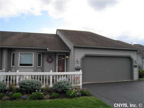 Rare single level, 3 bedroom, 2 bath end unit townhouse with full basement and 2 car garage in desirable Erie Village. Large kitchen has solid surface counter tops and breakfast area with bay window overlooking patio. Living room has cathedral ceiling with skylights and ceiling fan. Sliding glass doors on either side of gas fireplace open onto private deck. Hardwood floors. Master bedroom has ceiling fan, walk in closet, sliding glass door to deck, and master bath with double sinks. Third bedroom has double french door entry and bay window. Ideal for home office. Enjoy the beach at Erie Lake.
