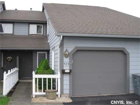 Well maintained 3 bedroom, 1.5 bath two story townhouse on quiet cul de sac in desirable Erie Village. Updated kitchen and bathrooms, new roof and exterior painting in 2009. Two sliding glass doors on either side of gas fireplace in living room open onto private deck overlooking small lake. Master bedroom has private vanity area. Large walk in closet on second floor and pull down stairs to extra storage above garage. All appliances stay. Close to Erie Canal for biking and hiking.