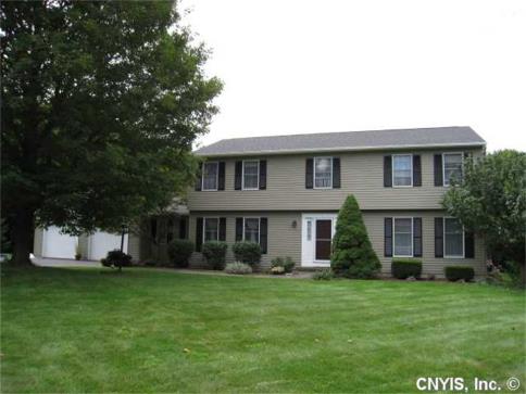 Beautiful 4 bedroom, 2.5 bath colonial on 1.5 acre partially wooded lot on quiet cul de sac. Spacious entry foyer opens to formal dining room and living room on either side. Large country kitchen with plenty of counter space and hardwood floors. Breakfast area has sliding glass door leading to bright and airy four seasons room with ceramic tile floor. Family room has woodburning fireplace, hardwood floors, skylights, and sliding glass doors opening onto large deck overlooking wooded back yard. Master bedroom has large walk in closet, vanity area, and spacious bath. Full basement, 2 car garage.