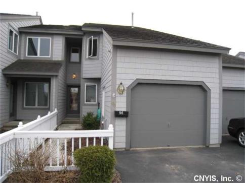 Beautiful 3 bedroom, 2 bath townhouse with open floor plan in desirable Erie Village. Large kitchen with breakfast bar flows into dining room and living room with ceiling fan. Hardwood floors on first level. Sliding glass doors on either side of gas fireplace open onto private deck overlooking picturesque pond. Large master bedroom and bath with whirlpool tub. Convenient second floor laundry room. Full basement, all appliances stay. Enjoy the beach at Erie Lake and walk the nature trail. Close to shopping, Northeast Medical Center and Erie Canal. Just twenty minutes from downtown Syracuse.